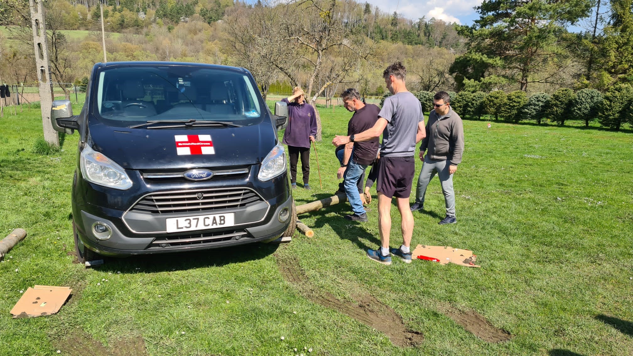 ‘I got some wood to get purchase underneath the wheels. So, I had five or six Ukrainians standing on this bit of wood because I was using it as a lever to lift the truck whilst I was trying to get unstuck.’